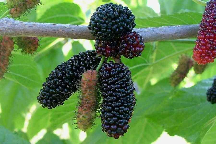 Standort: Sonne, geschützter Standort/ Wuchshöhe: Endhöhe ist von der Höhe der Veredelungsstelle abhängig/ Laub: hellgrün, sommergrün/ Blüte: Mai, Juni, unscheinbare Kätzchen/ Früchte: wohlschmeckende himbeerartige essbare Früchte, die abfallen, wenn sie reif sind/ Besonderheiten: stark hängende Zweige, schirmförmiger Wuchs, Hochstamm, Solitärgehölz