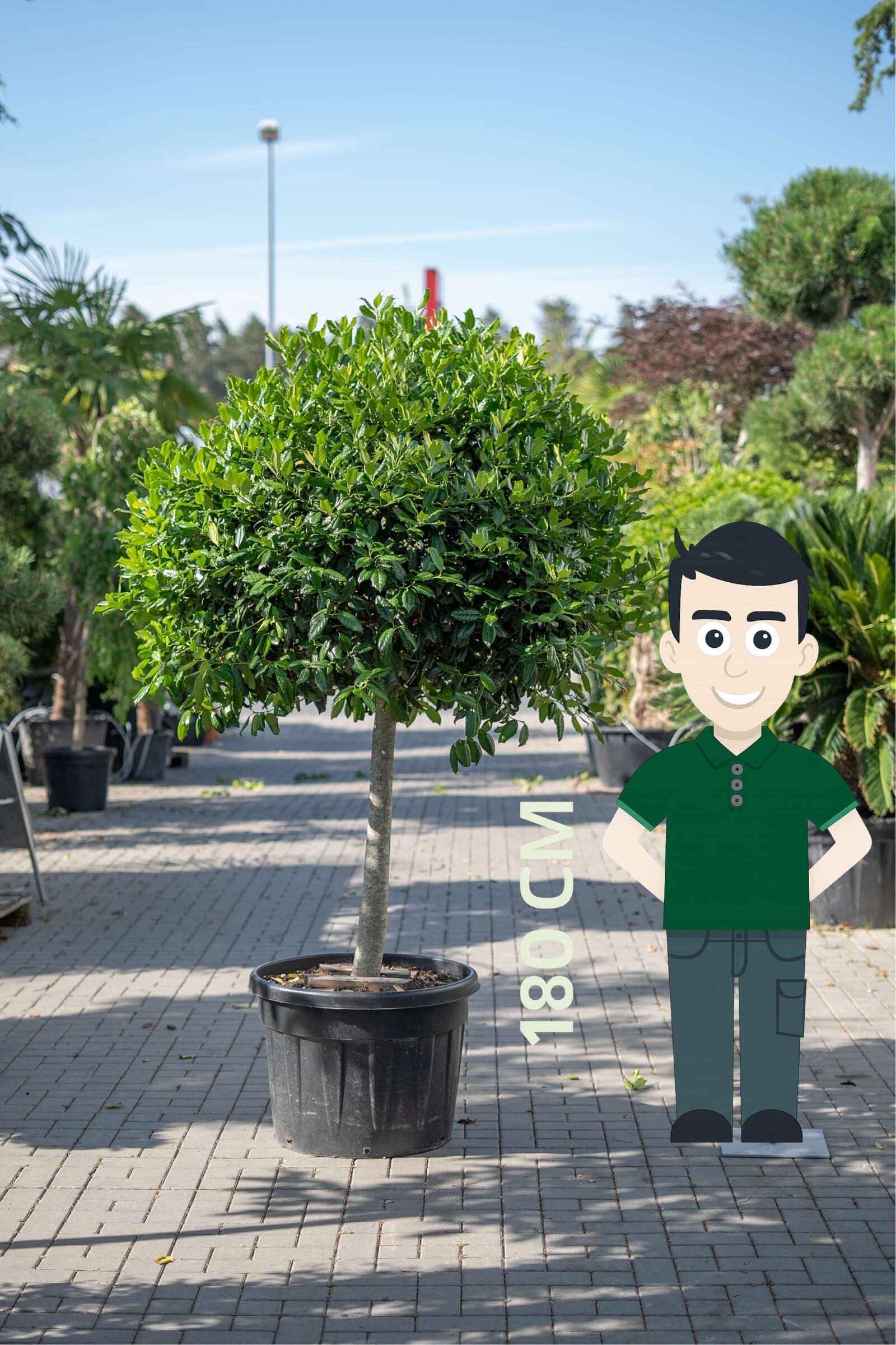 Hochstamm, Schnitt als Formgehölz möglich, hier runde Krone.